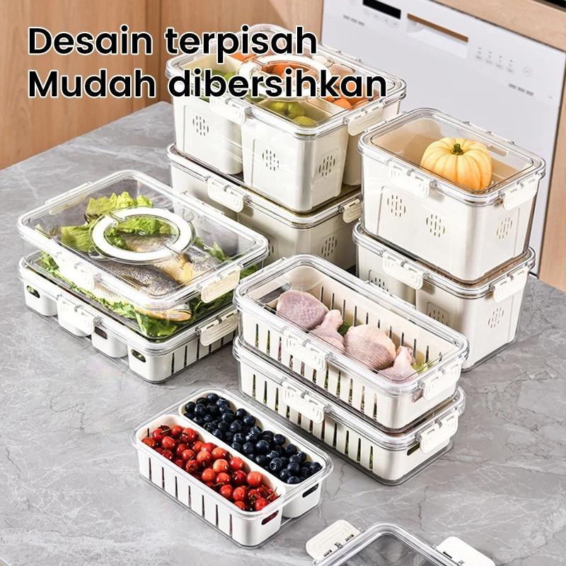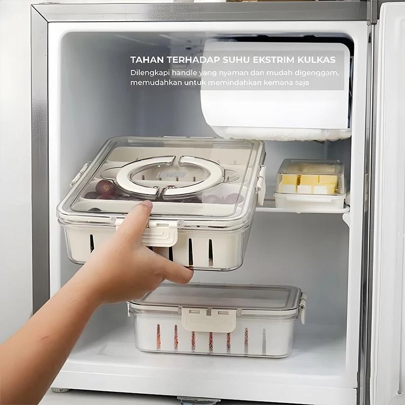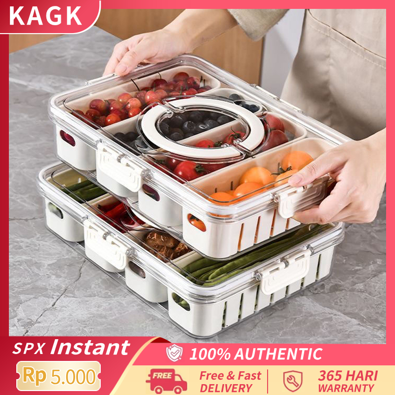 KAGK Food Container 4 Grid/ 8 Grid Kotak penyimpana makanan ringan Tempat makan bumbu dapur Wadah penyimpanan makanan di kulkas