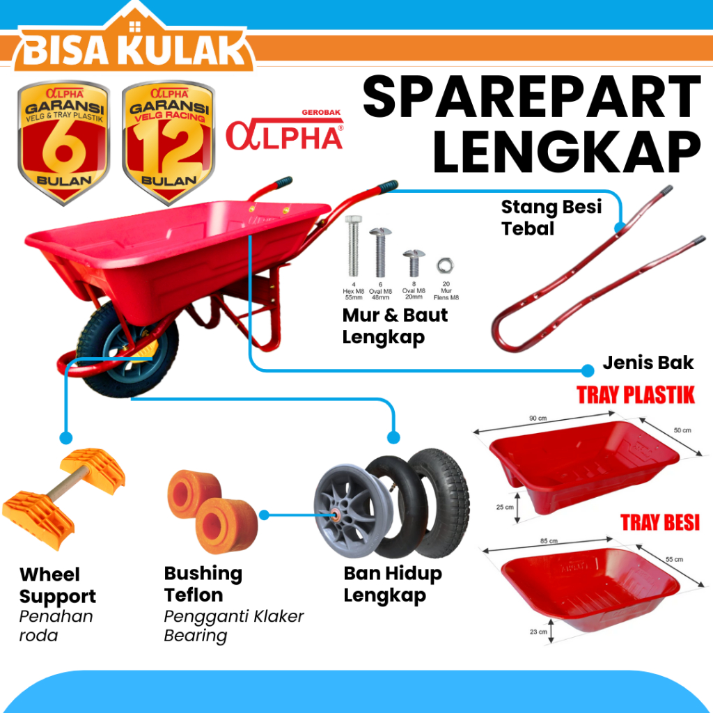 GEROBAK DORONG / ANGKONG - ALPHA BAK PLASTIK TEBAL ANTI PECAH