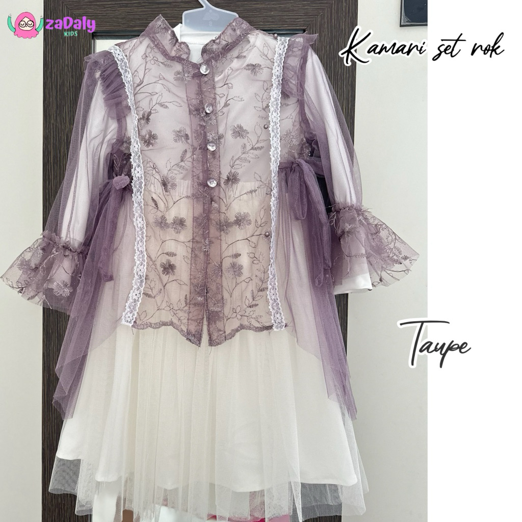 BAJU KONDANGAN ANAK SET ROK SET GAUN ANAK BAJU LEBARAN ANAK MODEL KEKIAN BRUKAT TILE (DAPAT 3 PCS INER + ROK + OUTER)