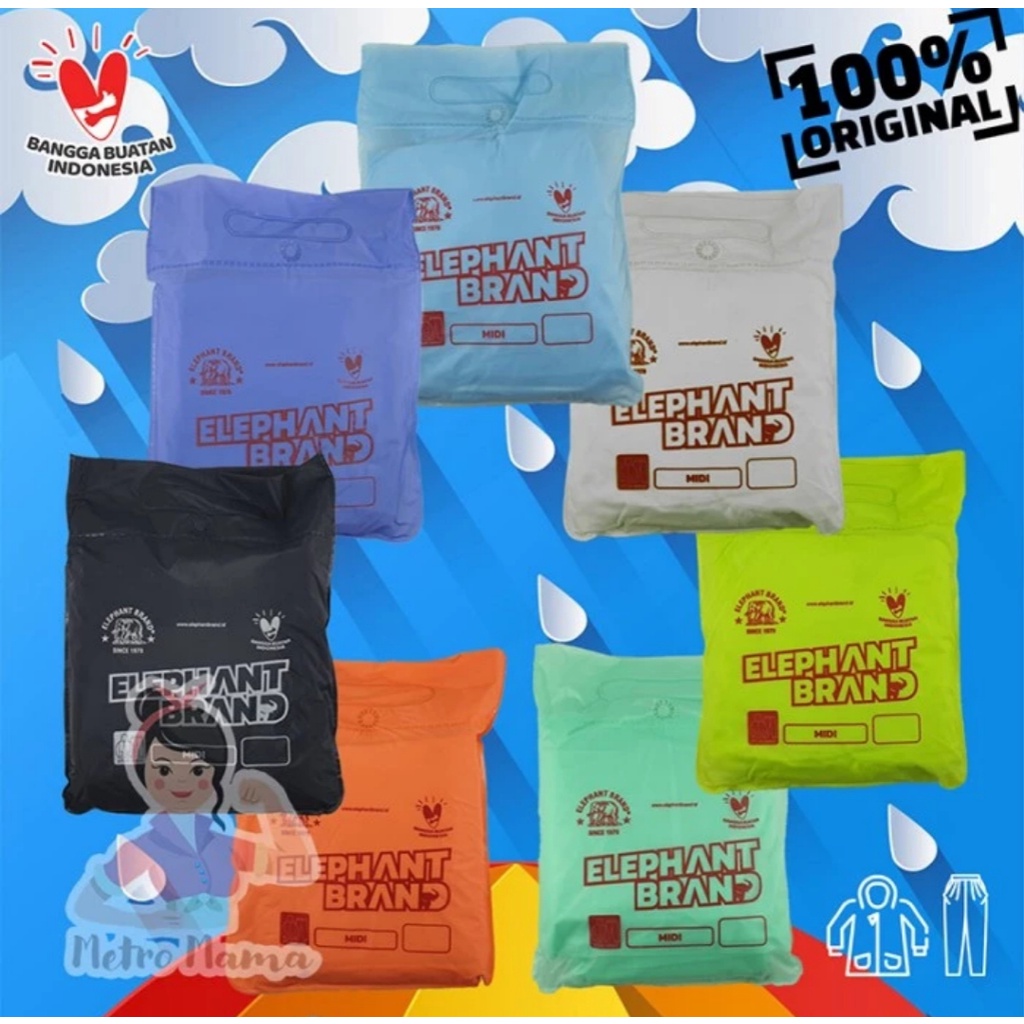 Jas Hujan MIDI Elephant Brand Jaket Celana Merk Gajah