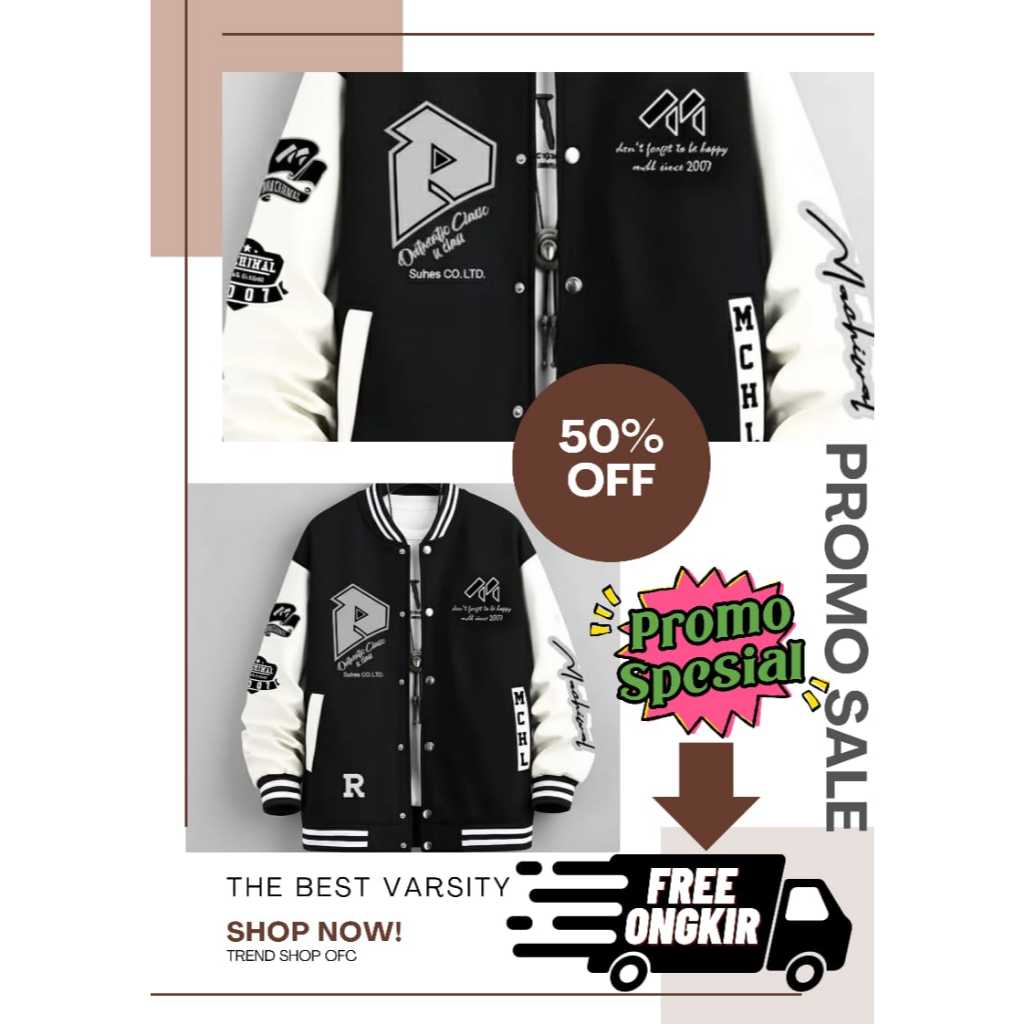 Jaket Varsity Vintage Full Bordir Rugby Pria Wanita Premium UNISEX ()