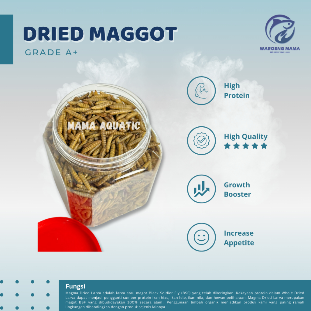 Dried Maggot Kering BSF 1kg Grade A Pakan Makanan Ikan Channa Koi Louhan Arwana Hamster Reptil Ayam