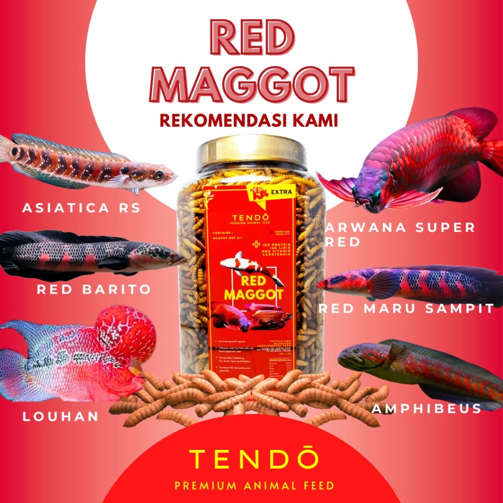 Maggot Kering Premium Pakan Ikan Koi Arwana Channa Tendo 300gr