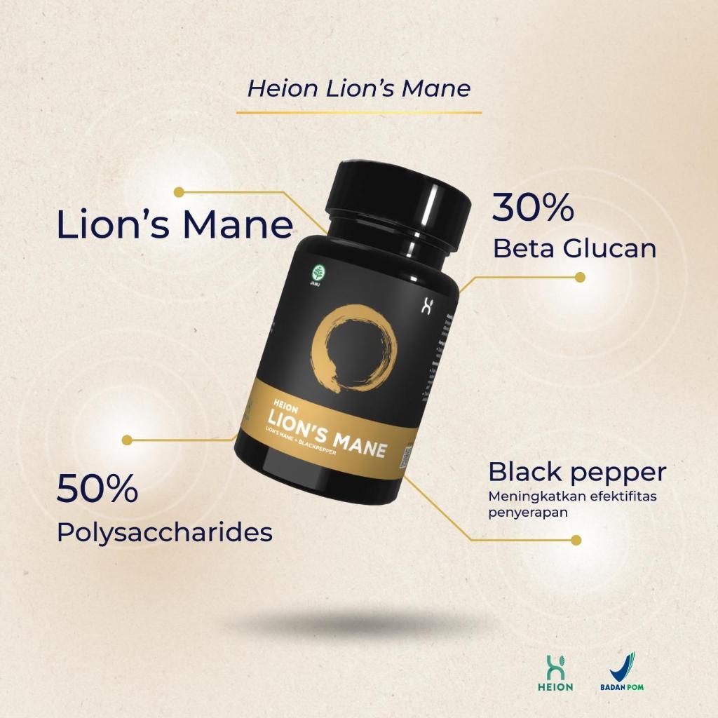HEION LION'S MANE 60Kapsul 500mg Bpom Resmi Lions Mane Kesehatan Otak Saraf Imun Anti Cemas BPOM TERLARIS