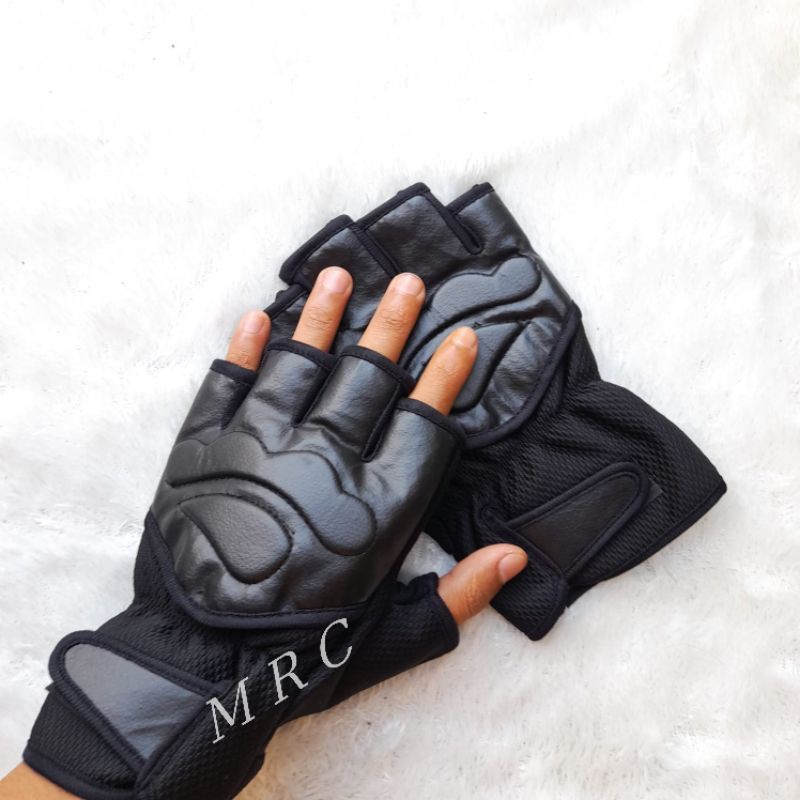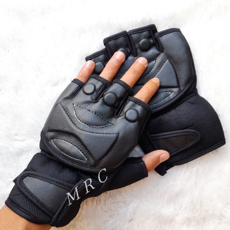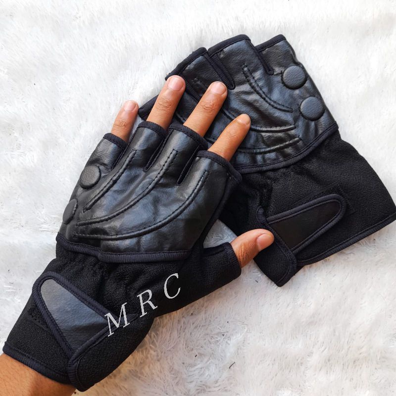 Sarung Tangan Motor Setengah Jari Kombinasi Kulit Pria Dewasa