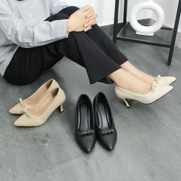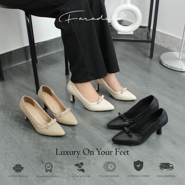 Sepatu Heels Wanita Faradela Leviola Sepatu Pantofel Wanita Heels Hak Tinggi 7 Cm Hitam Kerja Kantor 7F01-02 Original