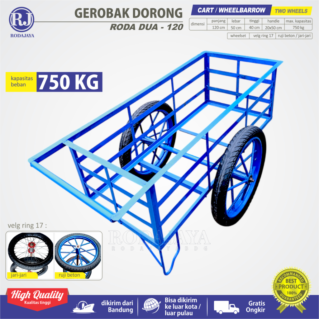 Roda dua Wheel barrow / gerobak karoseri / handcart / gerobak dorong ukuran 120x50x40 cm / kekuatan beban 750 kg. Alat a