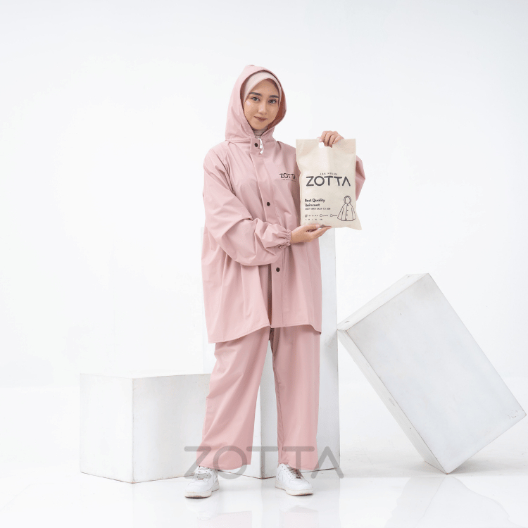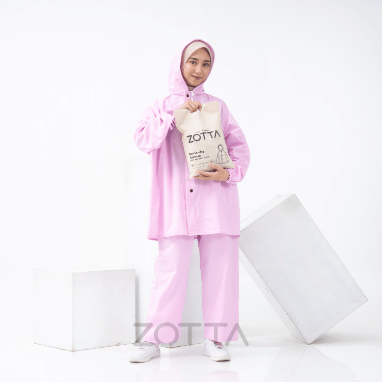 ZOTTA Jas Hujan Wanita Pink Pastel Lucu Aesthetic Stelan Celana