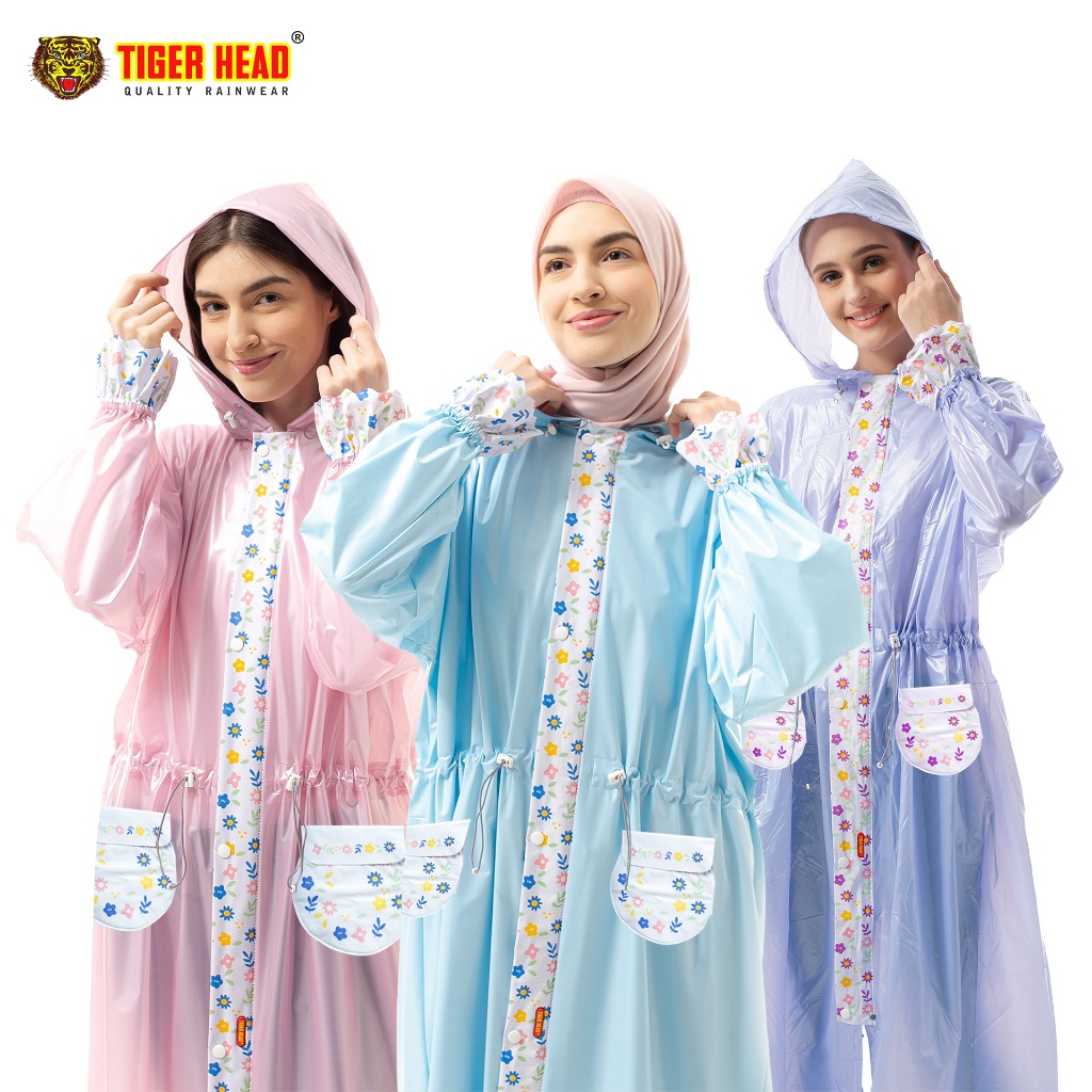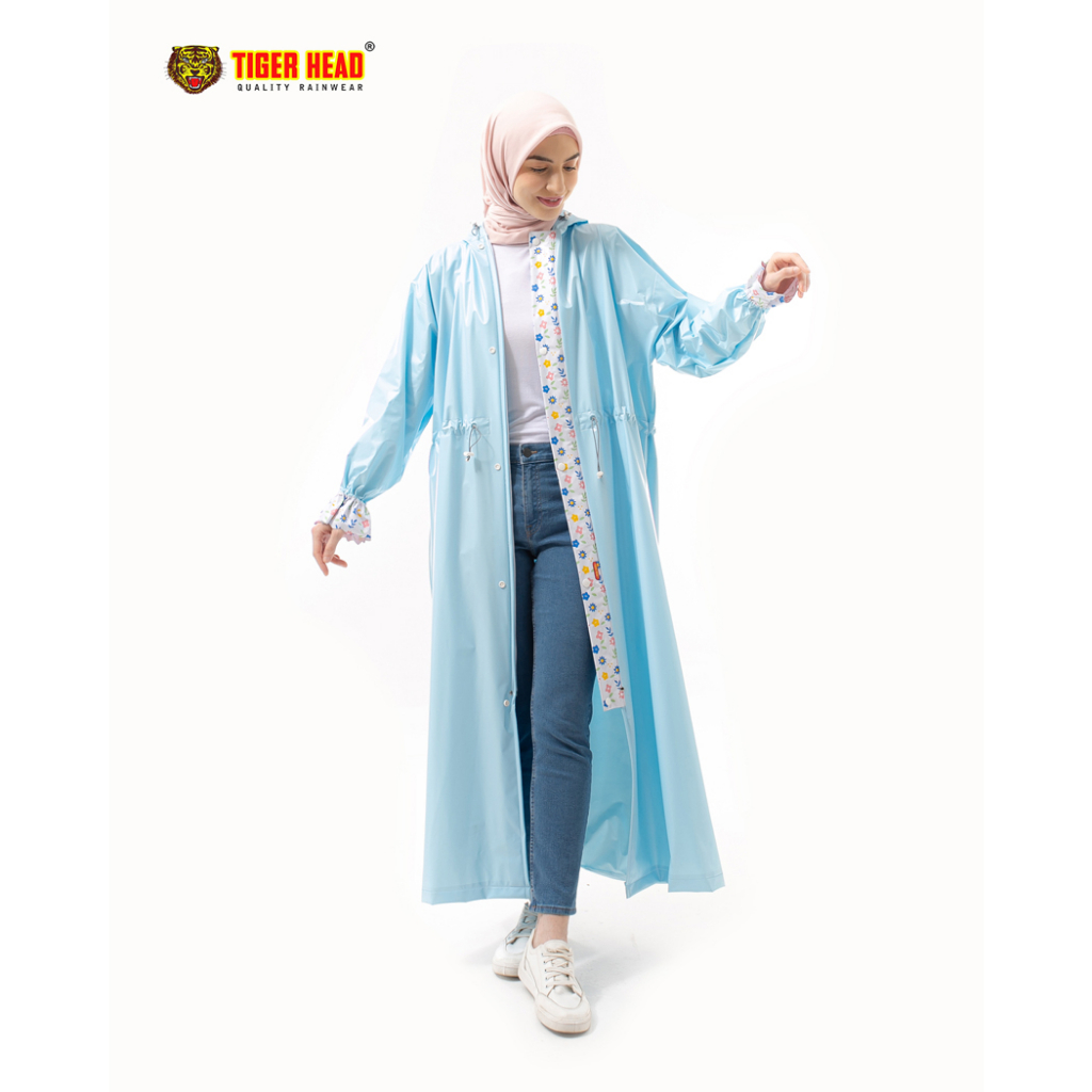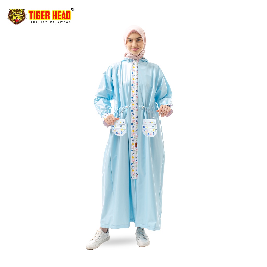 Jas Hujan Gamis Saku Peony Raincoat Tiger Head - Kode 68347