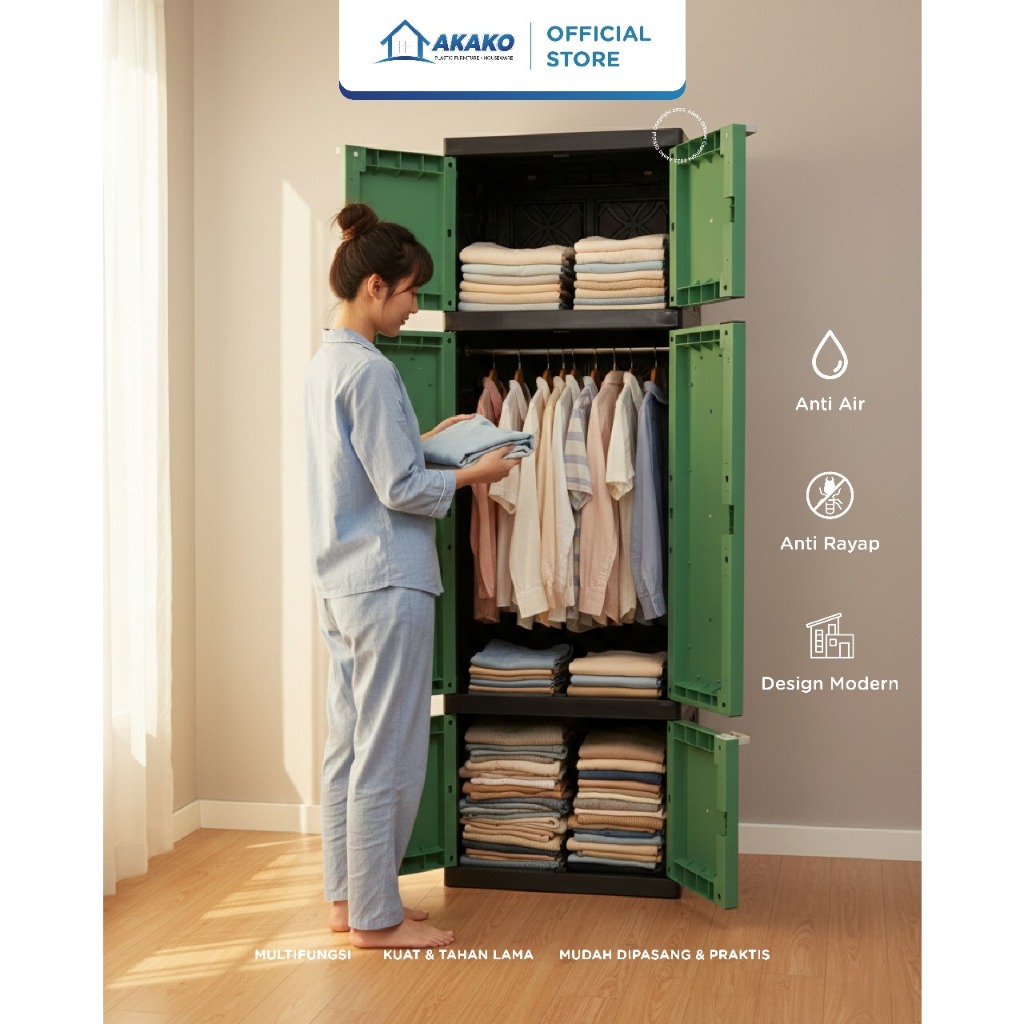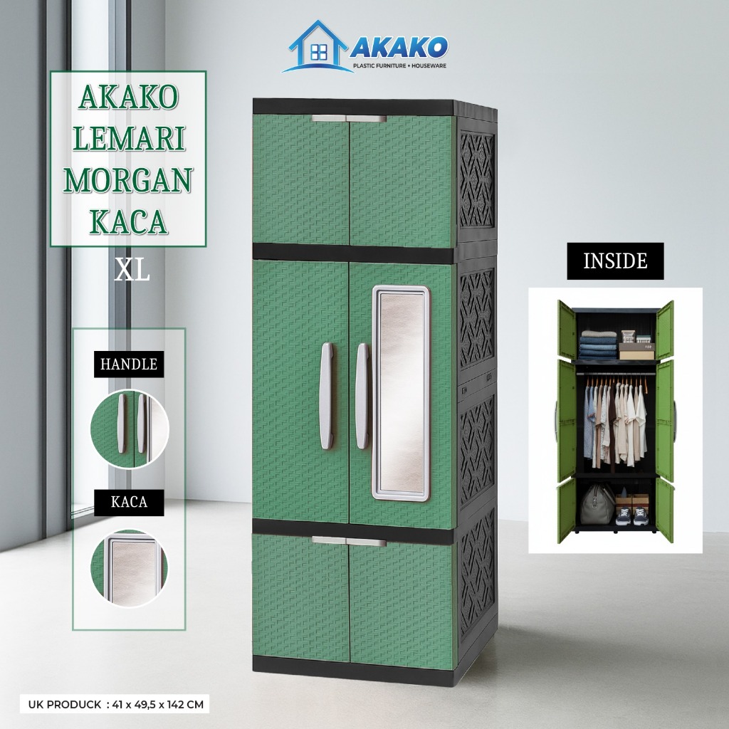 AKAKO - Lemari Plastik Akako MORGAN L / XL 2 Pintu Motif Rotan Gantung + Rak + Cermin Anti Rayap