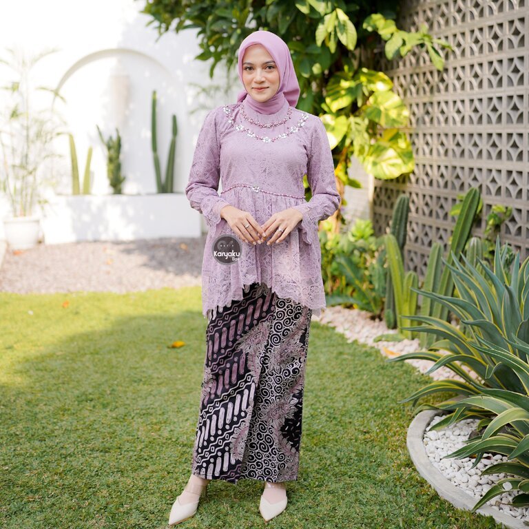 COUPLE SET KEBAYA BATIK SELVIA PREMIUM WARNA MAUVEE SET KEMEJA EKSKLUSIVE LENGAN PANJANG