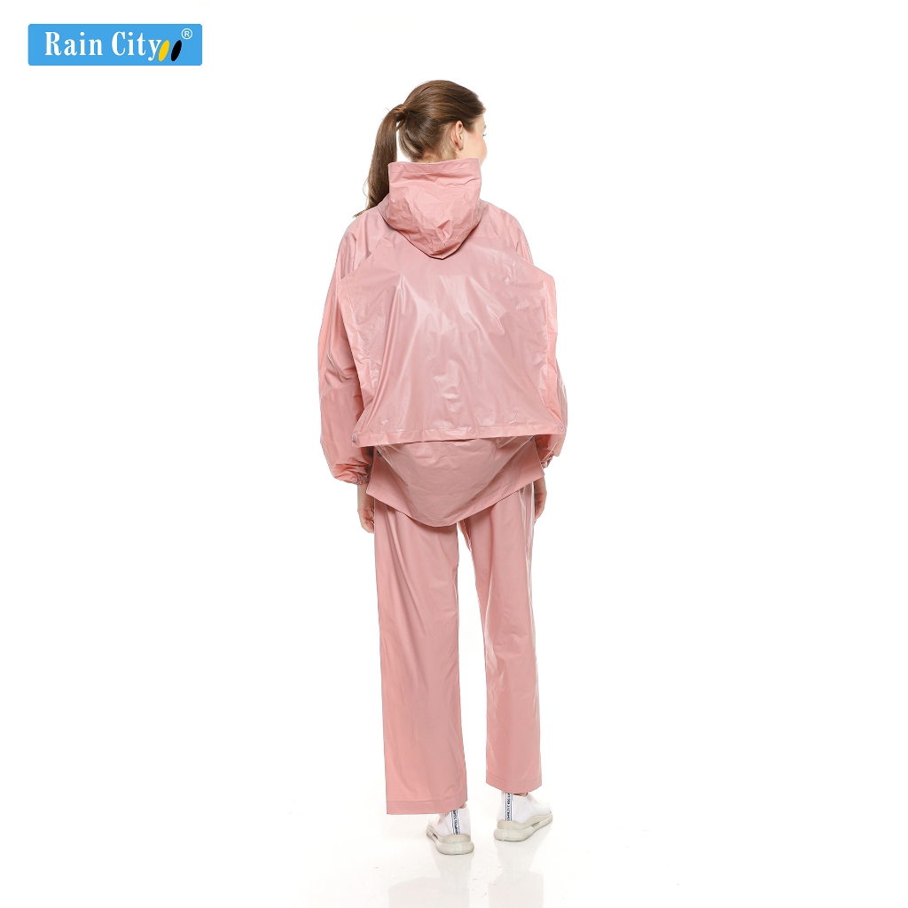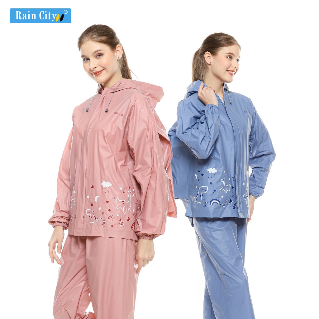 RAIN CITY Jas Hujan Setelan Wanita Ransel Pink Pastel Lucu Dino Doodle 70047 - PVC Anti Rembes