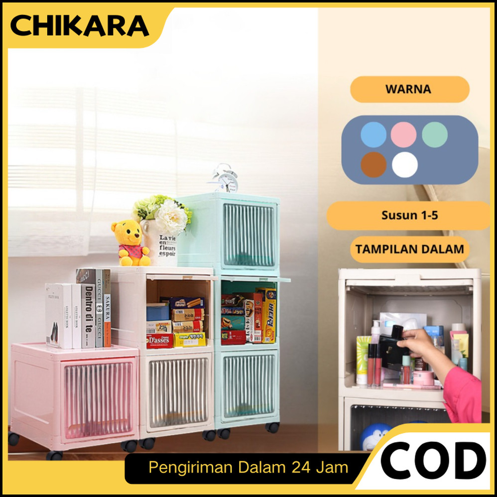 CHIKARA Lemari Pakaian Plastik OCLA FLIP UP Lemari Susun Rak Sepatu Pintu Transparan Geser Atas Roda
