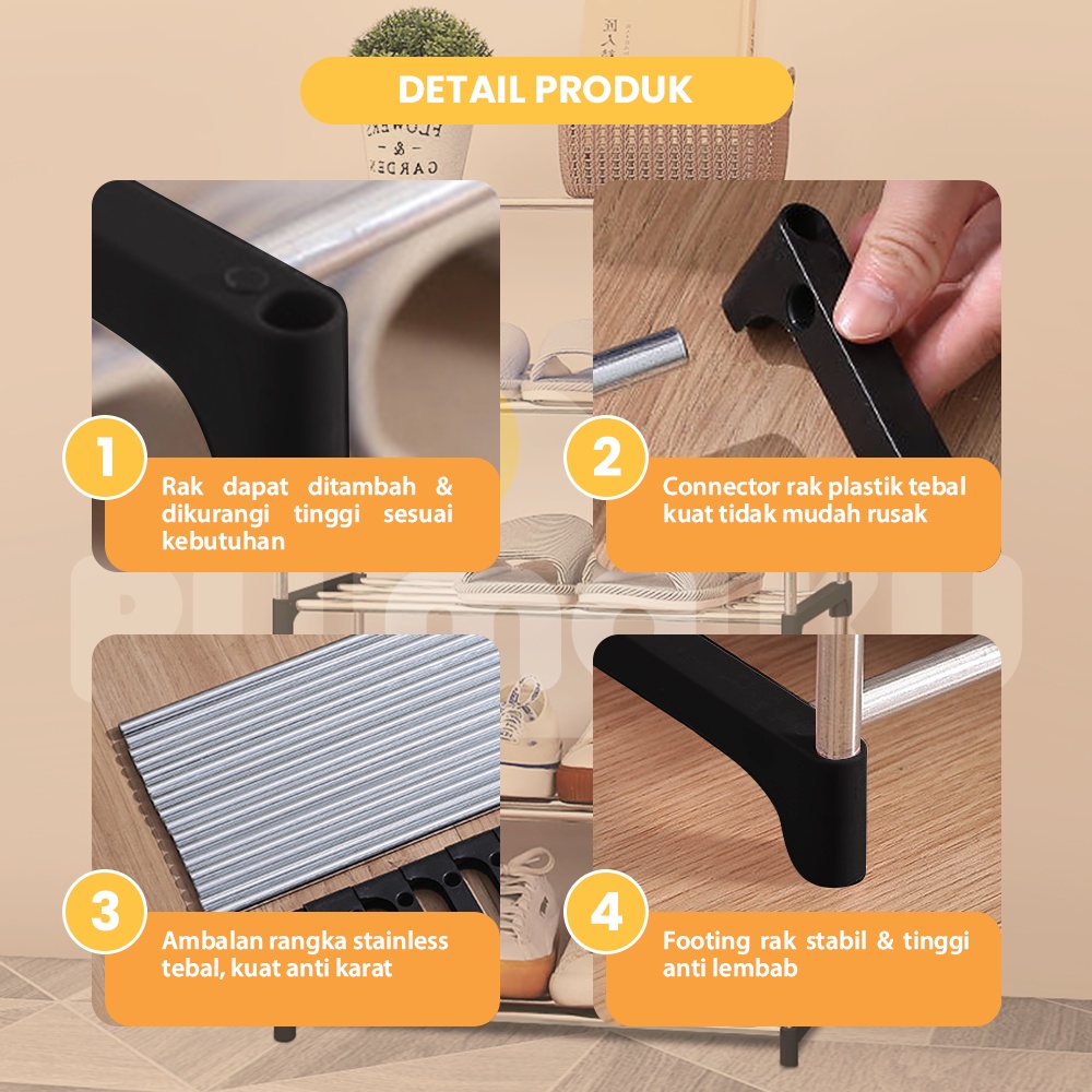 Rumaku Rak Sepatu Sandal Minimalis 5 Susun Serbaguna Stainless Steel