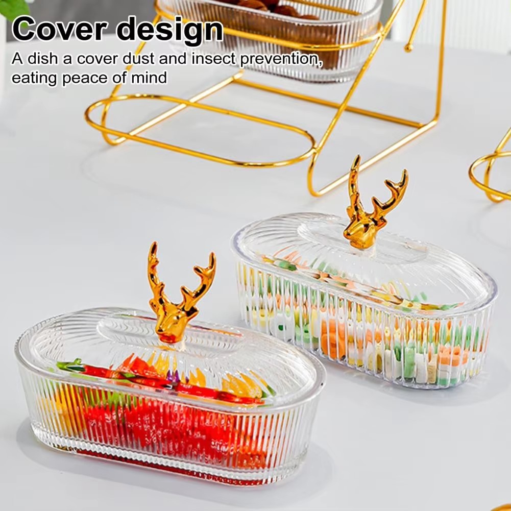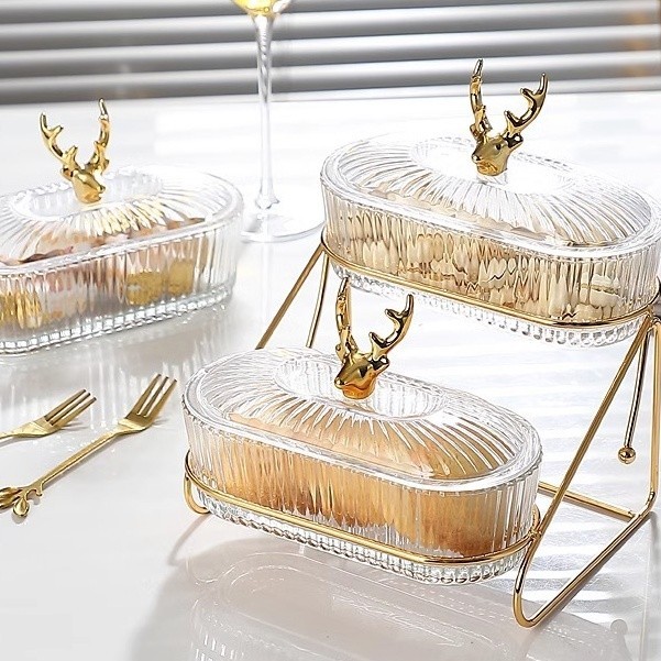 3 Tingkat Tempat Buah Rangka Besi Baki dengan Tutup Rusa Toples Tempat Buah Snack Kopi Makanan Ringan Wadah Kotak
