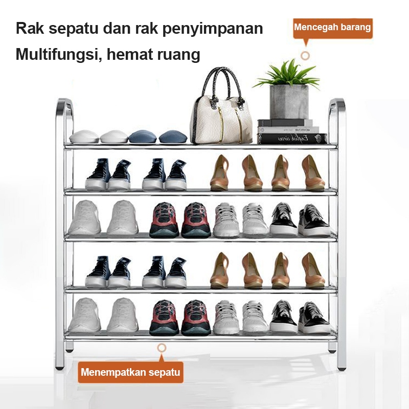 [Mal Sederhana]Rak Sepatu 3/4/5 Tingkat - Stainless Steel - Cantik dan Tahan Lama - Tidak Memakan Tempat - Rak Sepatu Serbaguna