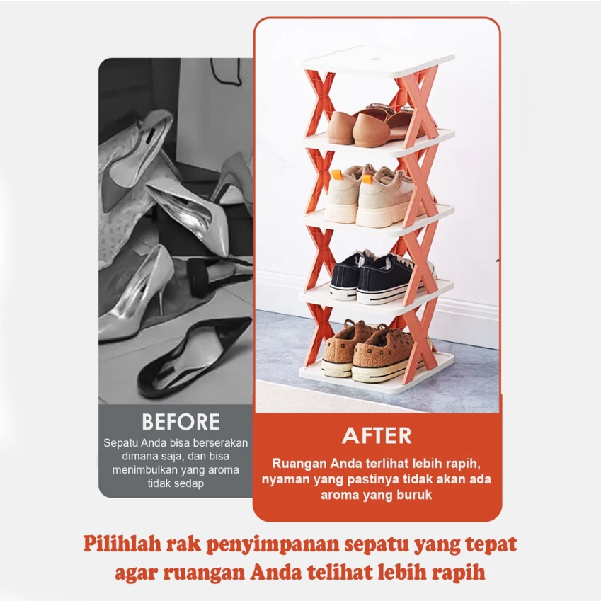Rak Sepatu Plastik Minimalis 4 Susun Tempat Sepatu Sandal Serbaguna-HAHAHOME