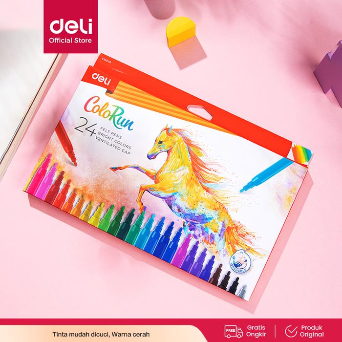 Deli Spidol 12/18/24 Warna Tidak beracun Warna Cerah EC100X0 tinta mewarnai - 12 WARNA