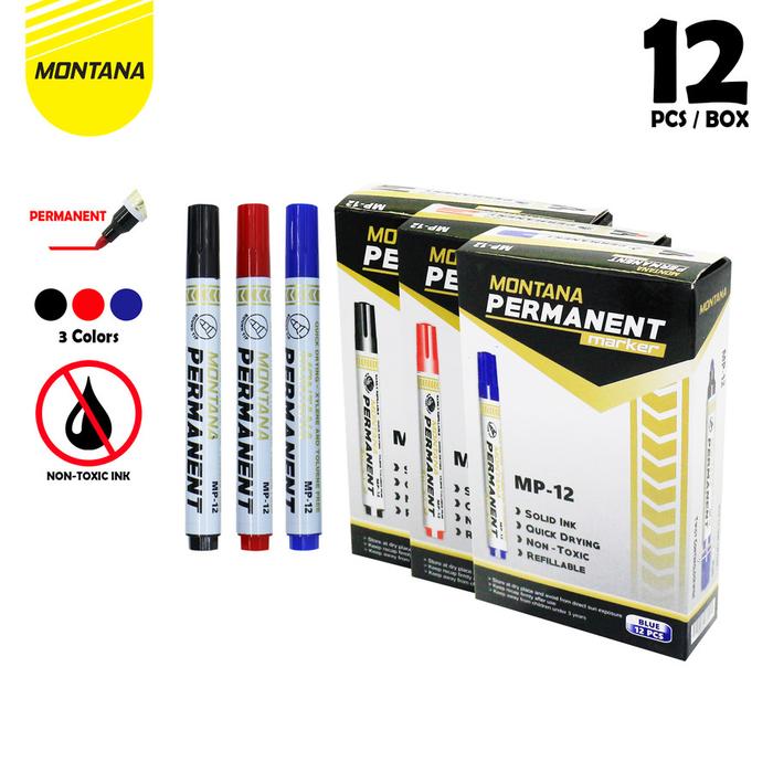 MONTANA Spidol Permanen Round Tip 12 Pcs Quick Dry Permanent Marker MP-12/Lusin Hitam - Blue