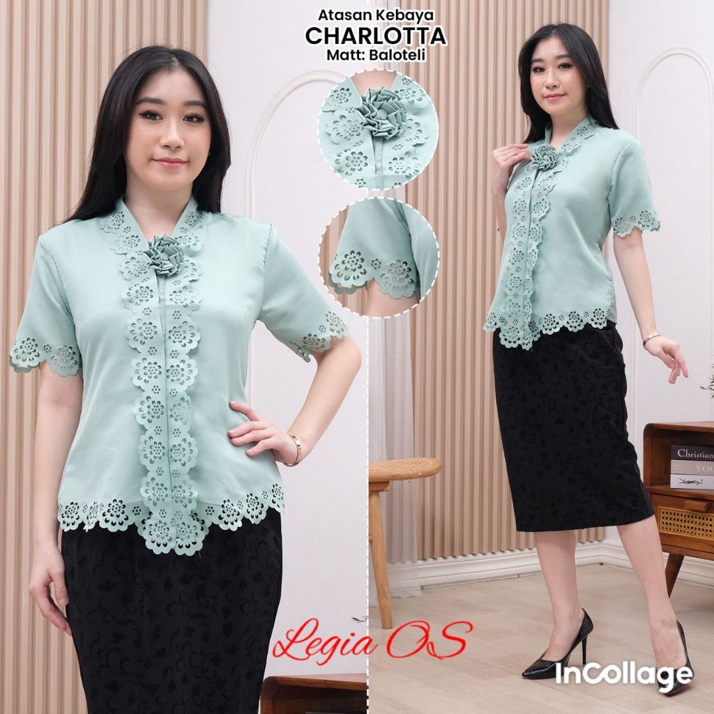 Atasan Kebaya Encim Lengan Pendek Laser Cut Charlotta