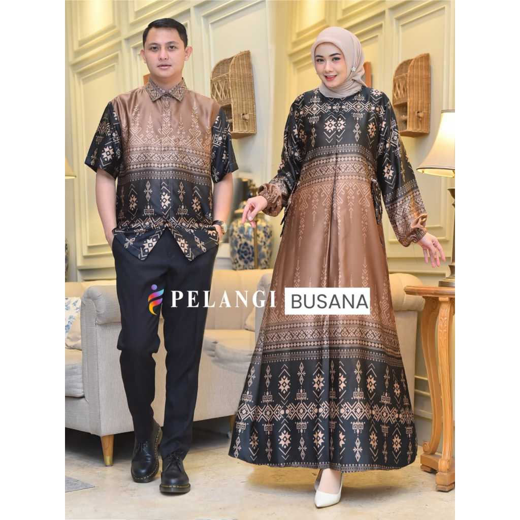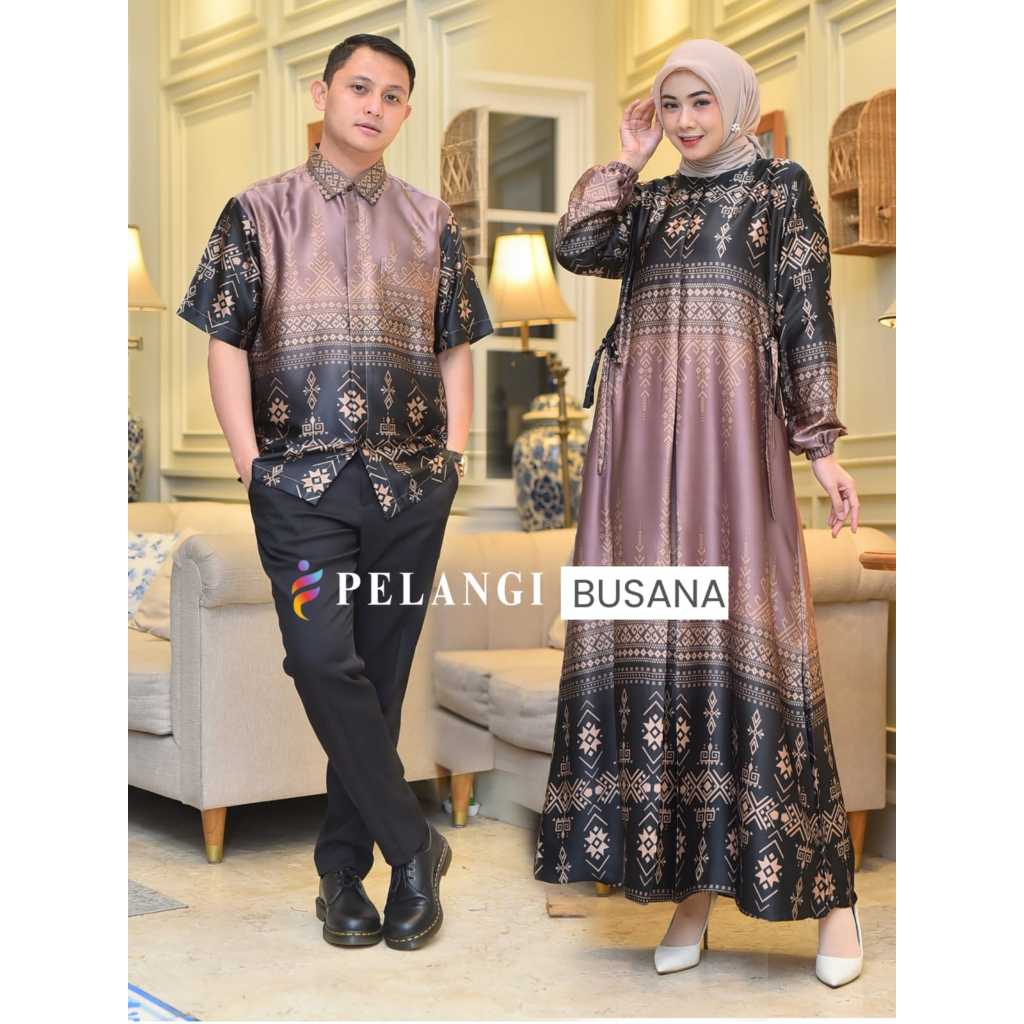 Couple Dress SYAMEERA Silk Premium – Set Pasangan Gamis & Kemeja Motif Elegan, Cocok Pesta & Lebaran 2025