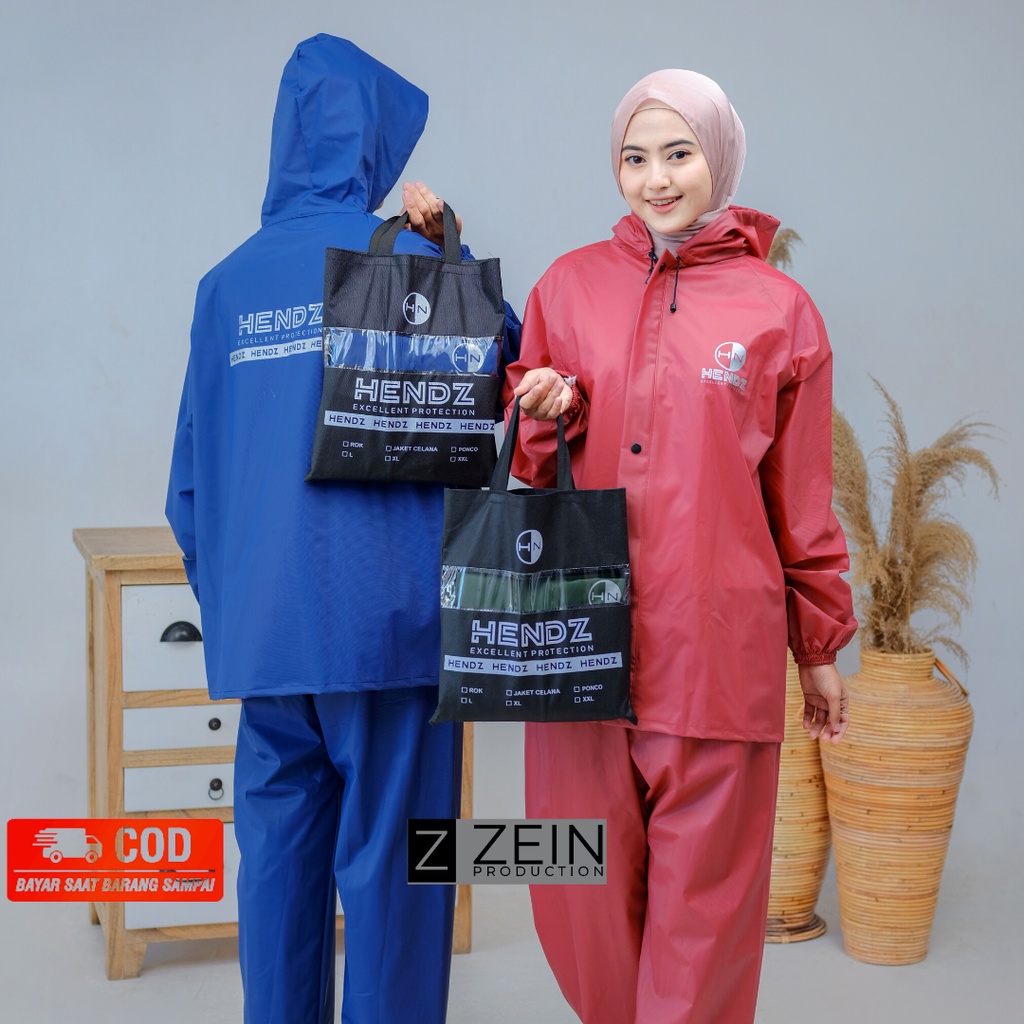Jas Hujan Raincoat Anti Rembes Pria Wanita Bahan PVC Karet 025 Tebal Kuat Elastis BY HENDZ Original