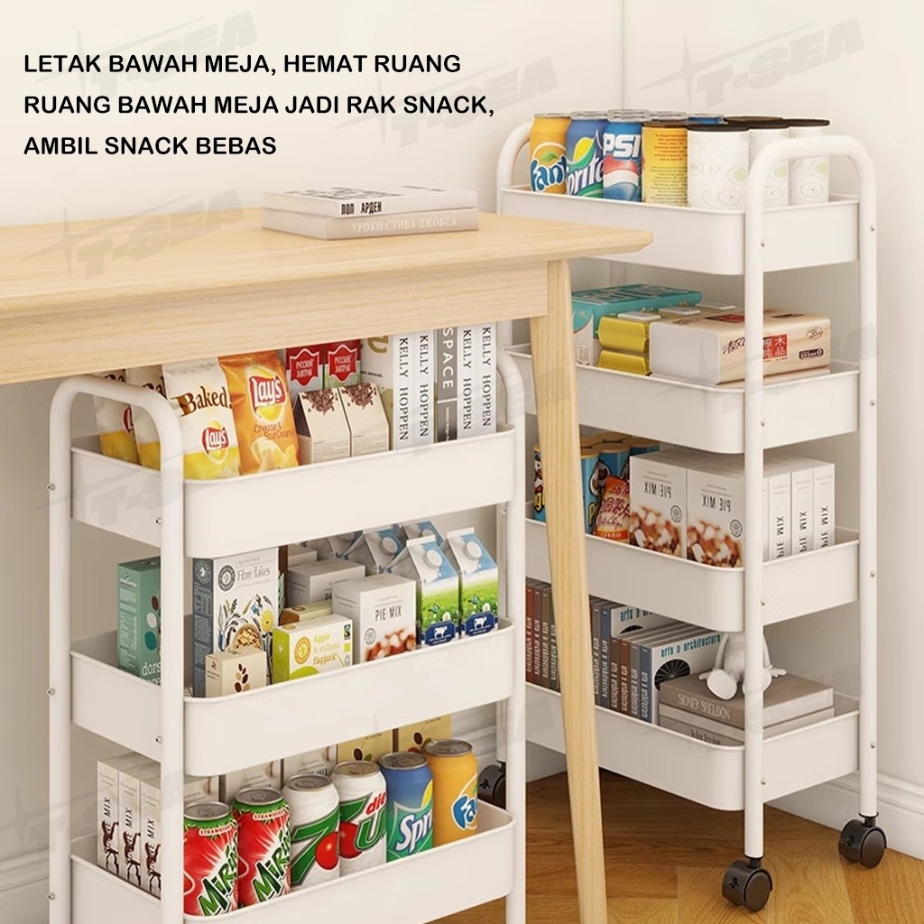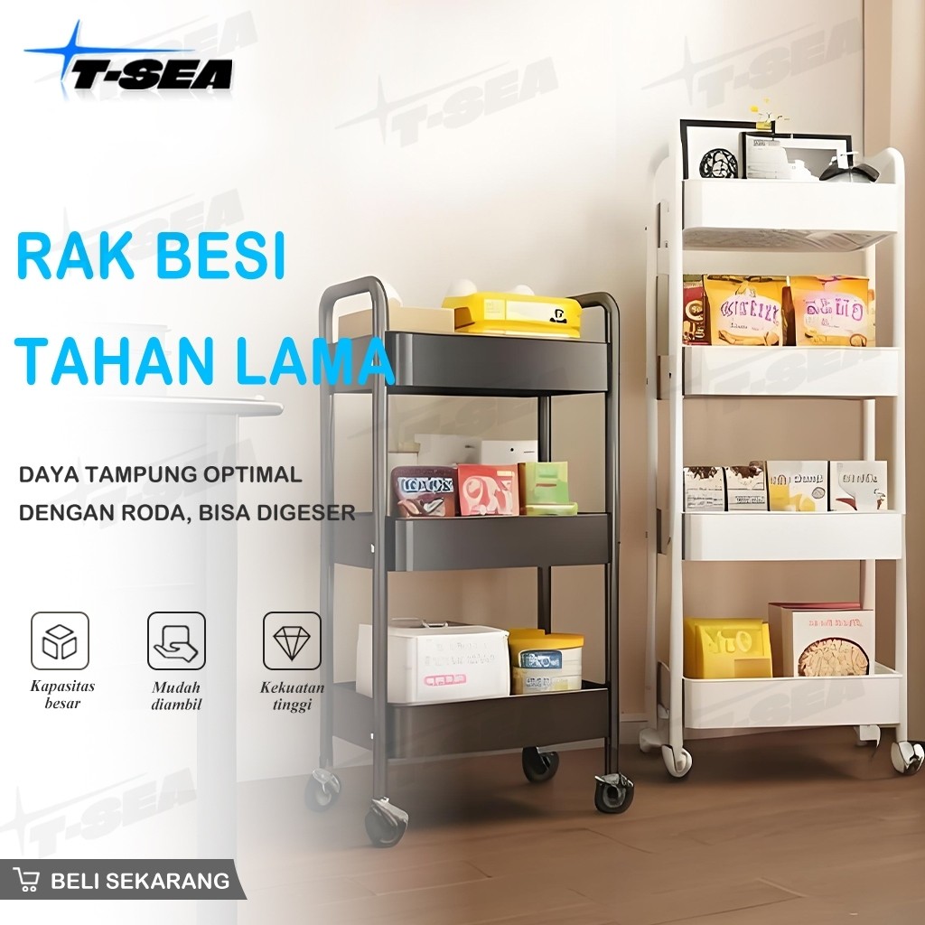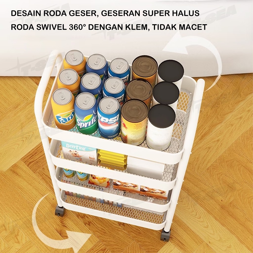 T-SEA Rak Troli Susun Dapur Kamar Mandi Salon Kosmetik 4 Tingkat Serbaguna Bahan Besi Berkualitas