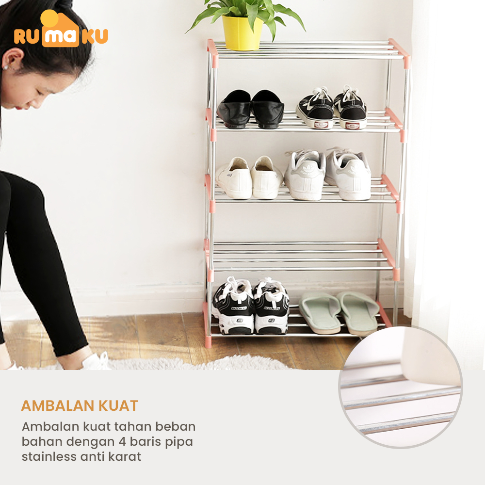 RMK Rak Sepatu Stainless Steel 5 Susun Minimalis Modern Serbaguna Stainless