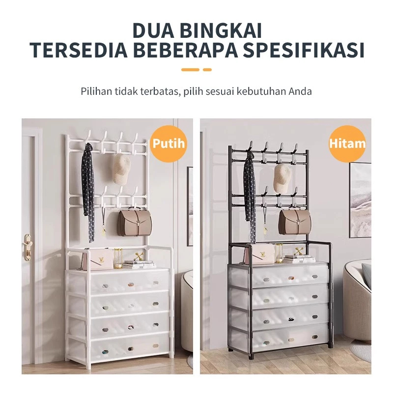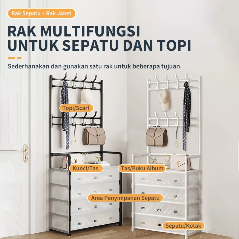 Rak Sepatu Tertutup Anti Debu Serbaguna, 5/6 lapis Rak Sepatu 2 in 1 Gantungan Tas Pakaian/ Rak Penyimpanan Dengan