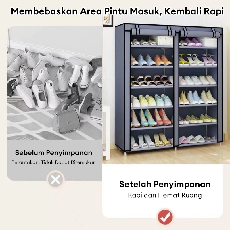 Lemari Sepatu Kain Rak Sepatu Kain Portable Rak Lemari Sepatu 10Susun Serbaguna