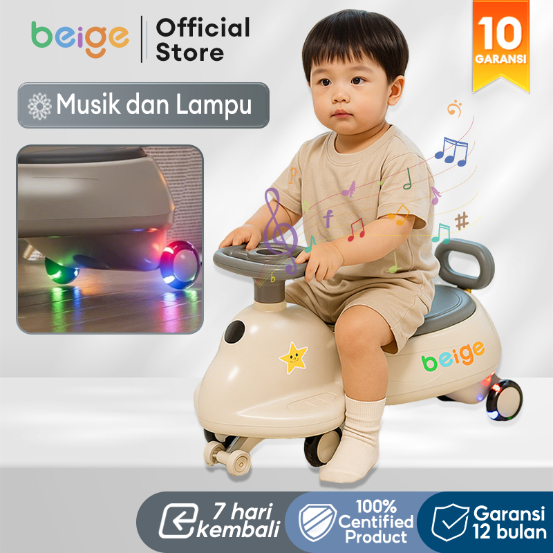 BEIGE YOYO CAR Mobil Dorong Anak 2in1 Ada Musik & Lampu, Portable - Umur 1-10 Thn