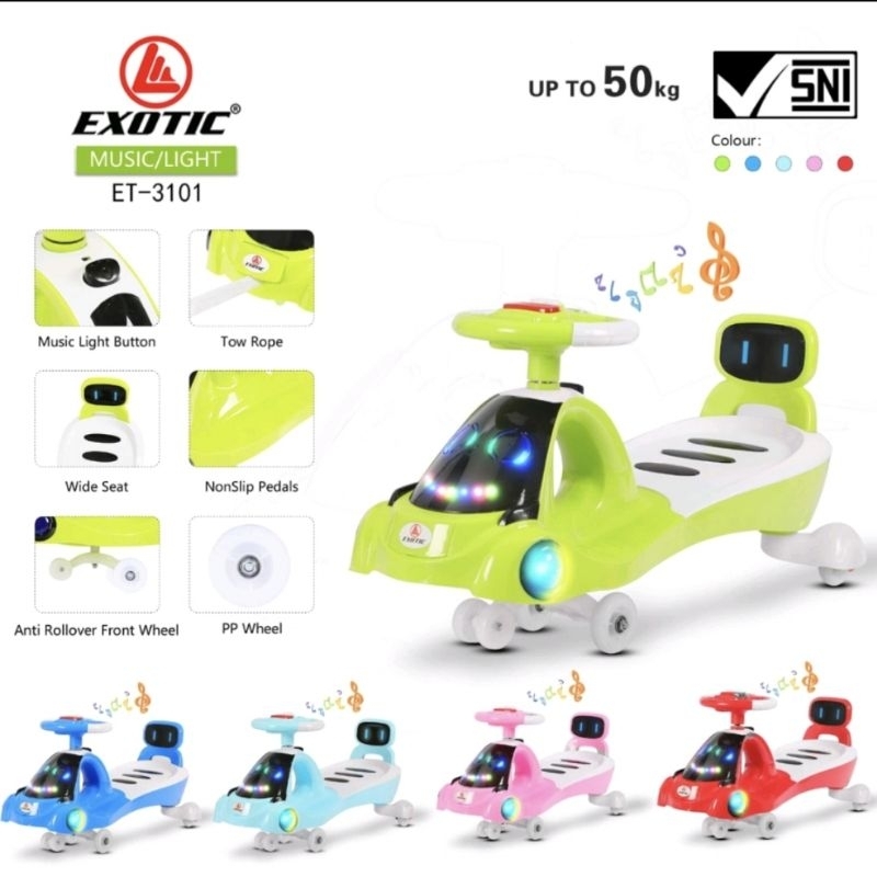 Mainan Anak Dorong Stir Musik dan Lampu Swing Car EXOTIC ET 3101 / Magic Car Exotic ET-3102