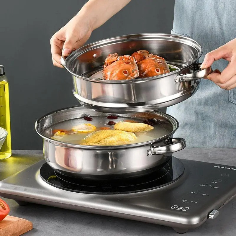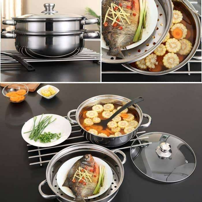 SN Kitchen Ware - Panci Kukus Set Stainless Steel Panci Sup Steamer Ikan Bakpao Siomay 2 Susun 28Cm Tebal