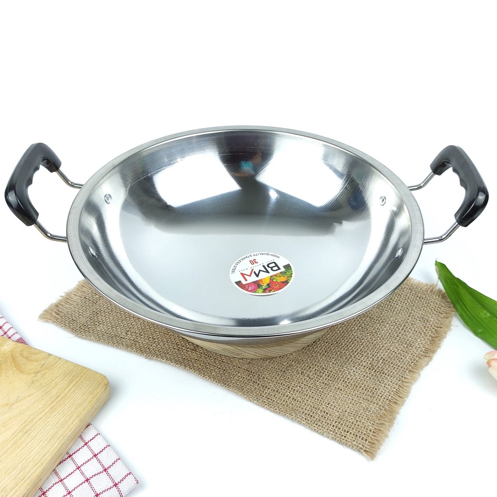 Wajan Kuali Penggorengan Stainless Steel / Wajan Premium 2 Gagang Tebal Anti Panas