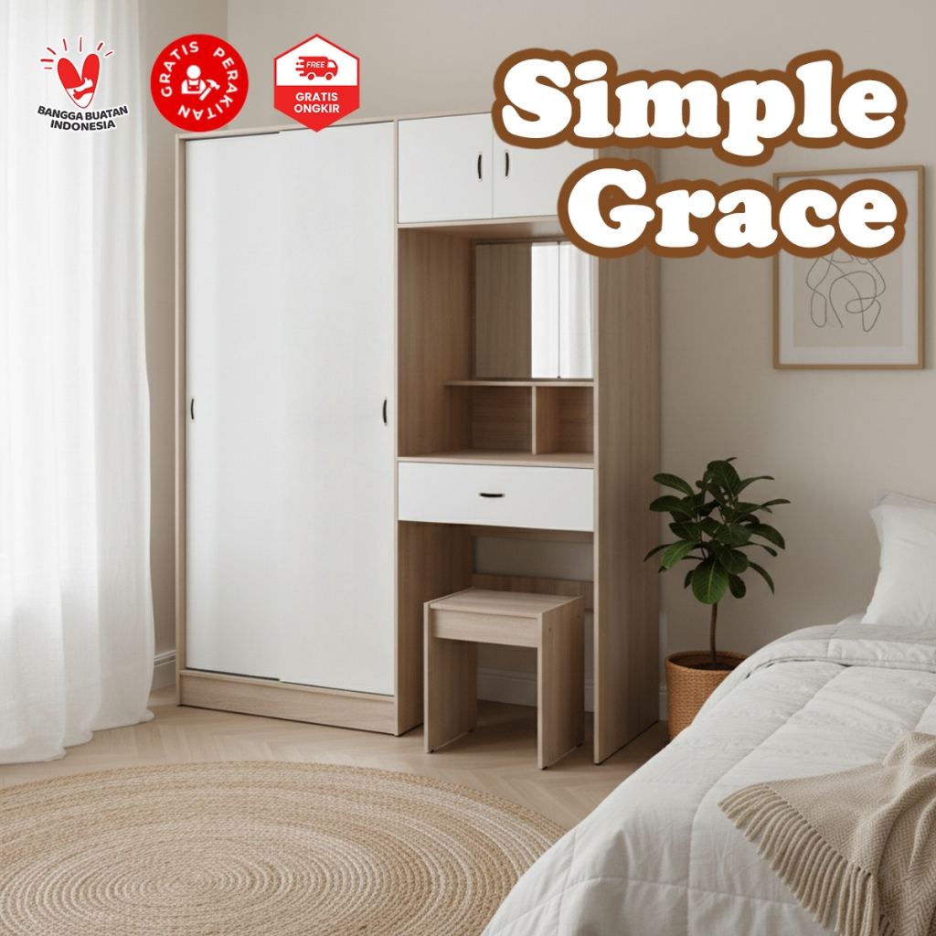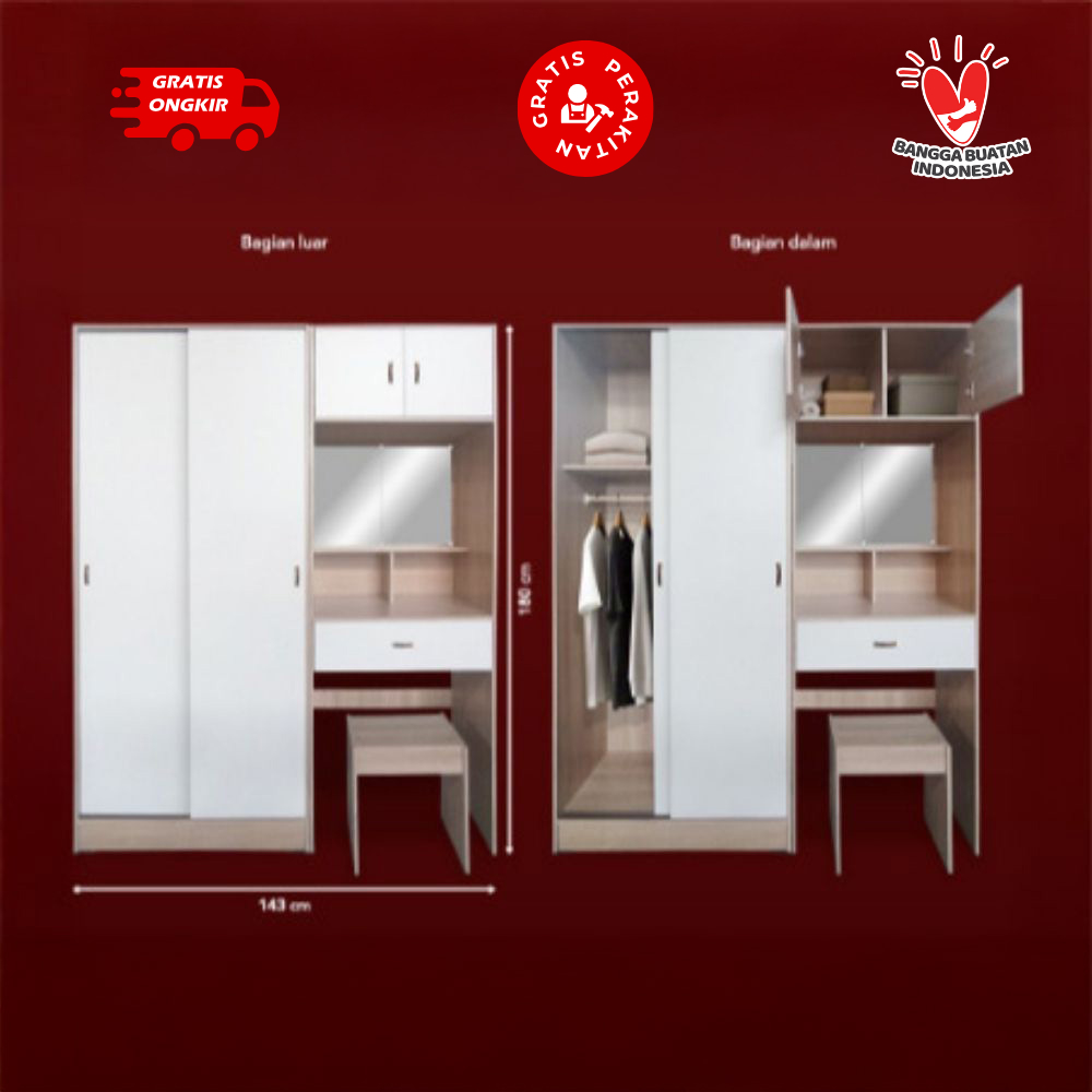 Casaloma Furniture Lemari Sliding Paket Meja Rias Minimalis Modern