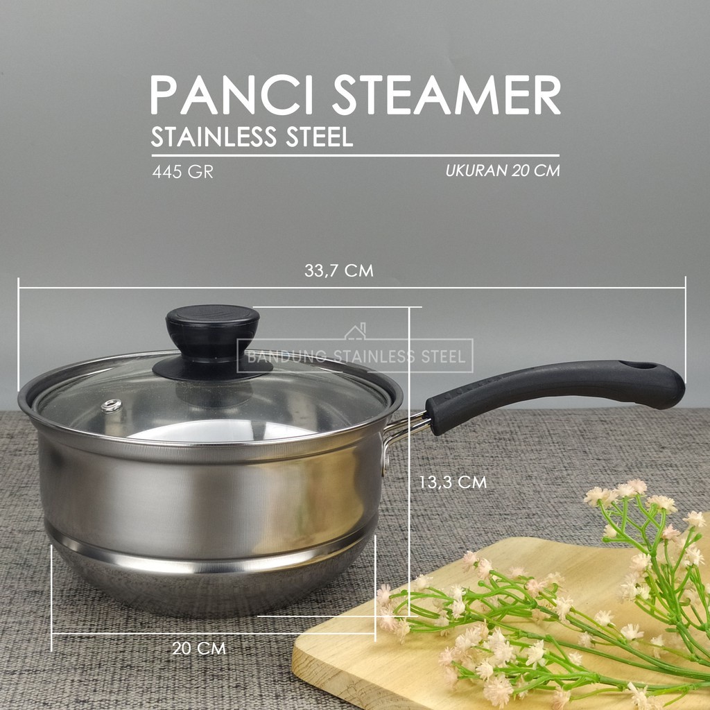Promo! Panci kukus steamer 18cm 20cm milk pot stainless steel tutup ka murah