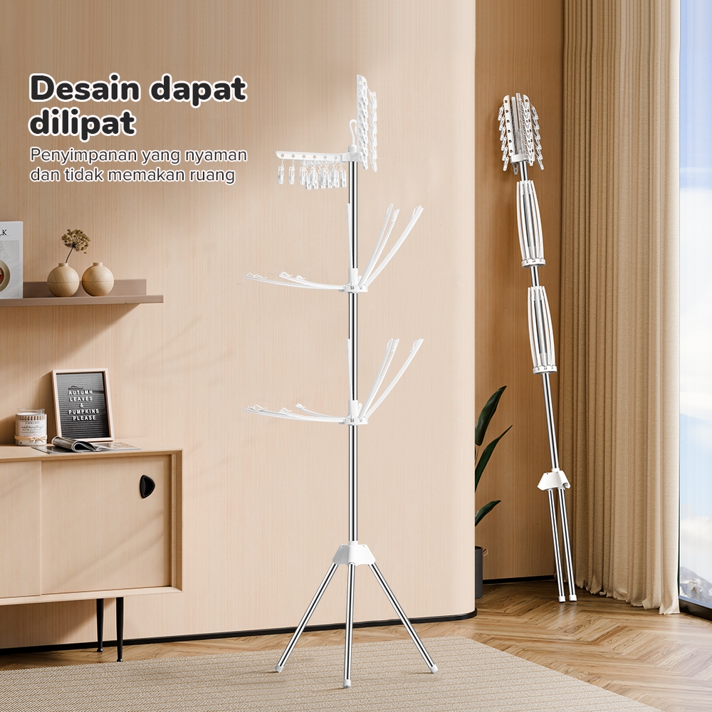 COOGER Jemuran Baju Bayi 3 Tingkat Rotasi 360° Jemuran Handuk Baju Bayi Jemuran Portable Stainless