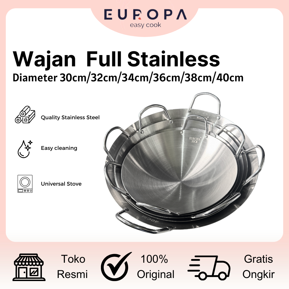 Kuali WOK WAJAN FULL STAINLESS STEEL TEBAL KUAT DENGAN GAGANG KUPING KUALI BESAR 30-40 CM EUROPA