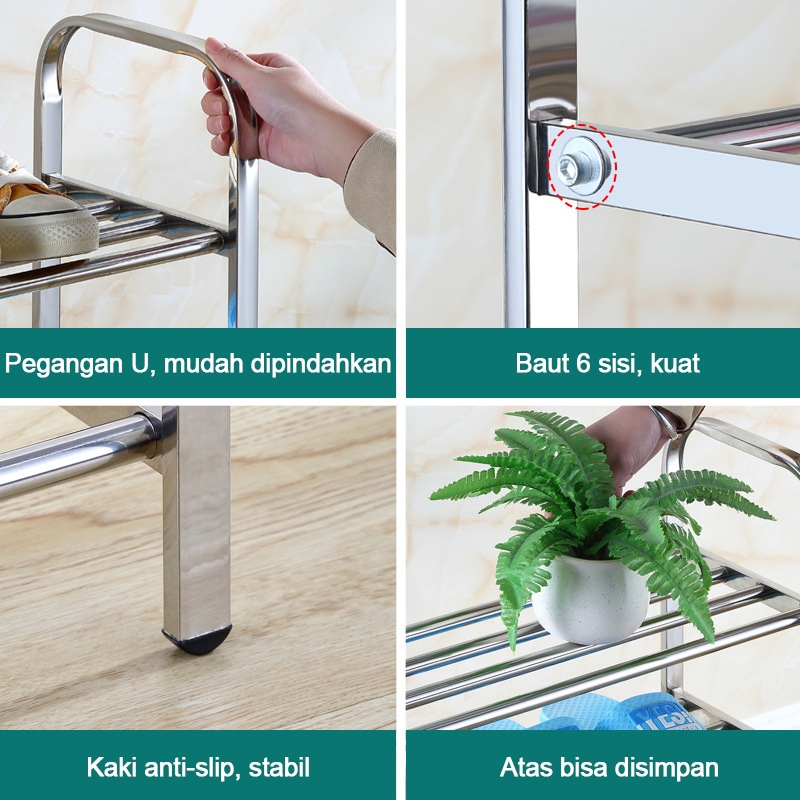 [Mal Sederhana]Rak Sepatu 3/4/5 Tingkat - Stainless Steel - Cantik dan Tahan Lama - Tidak Memakan Tempat - Rak Sepatu Serbaguna