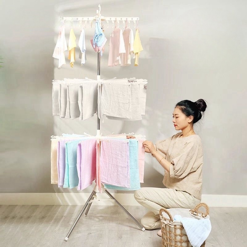 Jemuran Bayi Lipat /Jemuran Baju Menara 3 Susun Plastik / Gantungan Baju Portable / Hanger Lipat