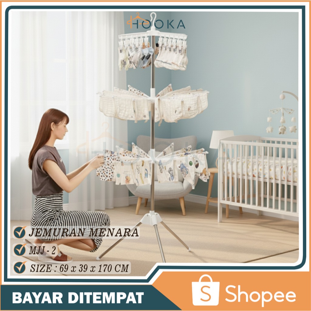 HOOKA Jemuran Gantungan Baju 3 Susun Jemuran Kaos Kaki Jemuran Portable Menara Lipat Stainless