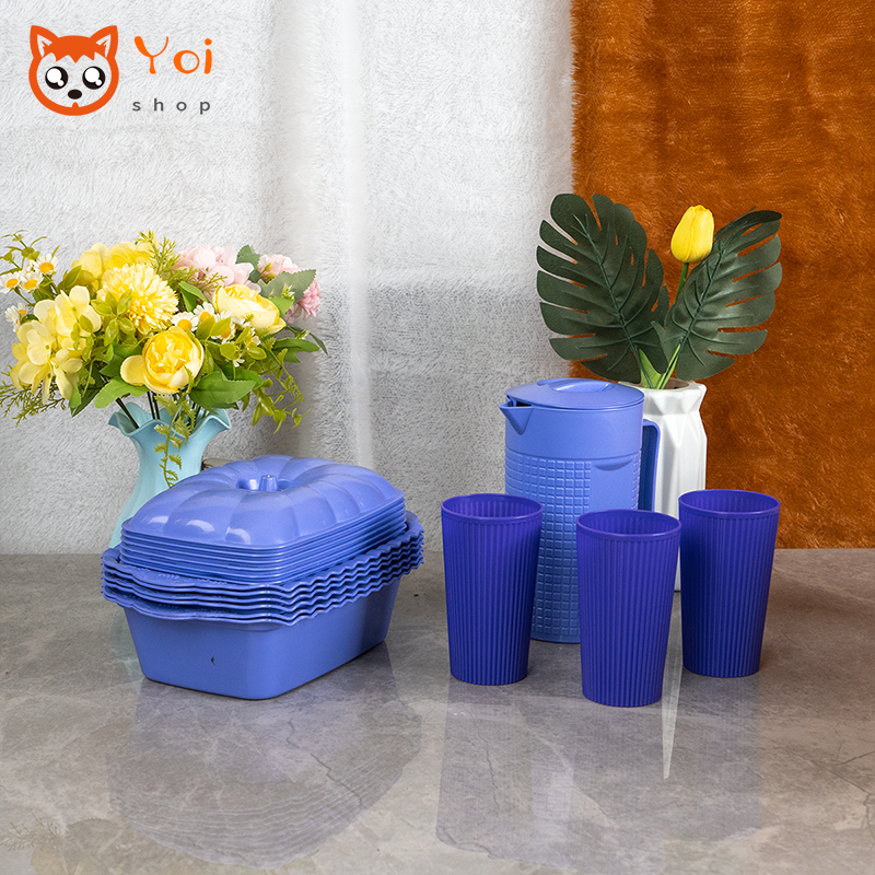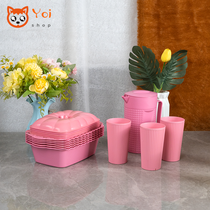 Yoi - (10pcs)Set Wadah Saji / Wadah Prasmanan 6pcs Segi + 1pcs Teko + 3pcs Gelas