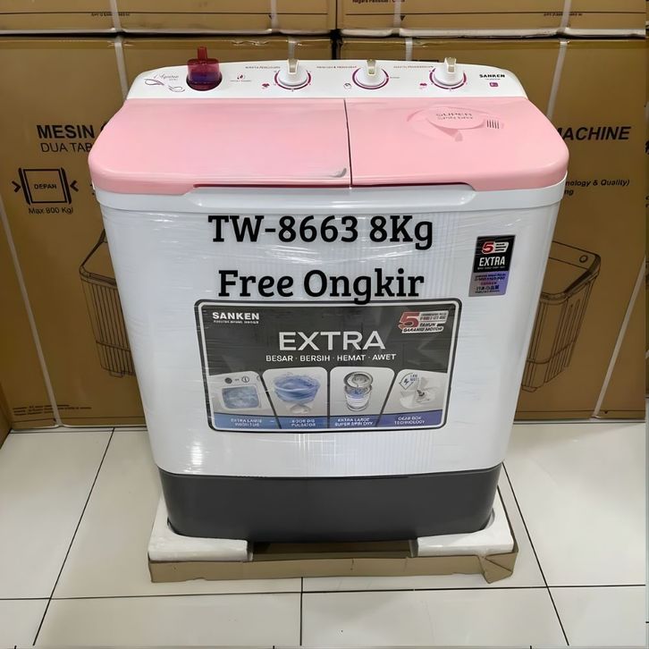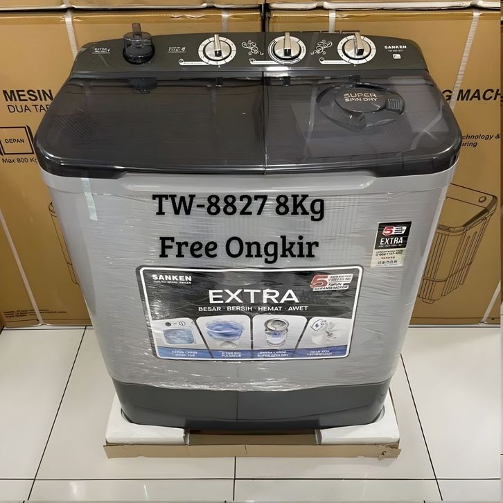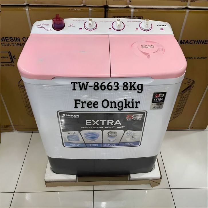 Mesin Cuci 2 Tabung Sanken TW-8600 8KG/TW-8827 8KG/TW-8663 8KG/TW-9110 9KG Mesin Cuci 2 Tabung Polytron Aqua Denpoo