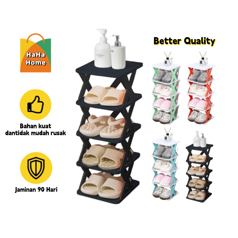 Rak Sepatu Plastik Minimalis 4 Susun Tempat Sepatu Sandal Serbaguna-HAHAHOME