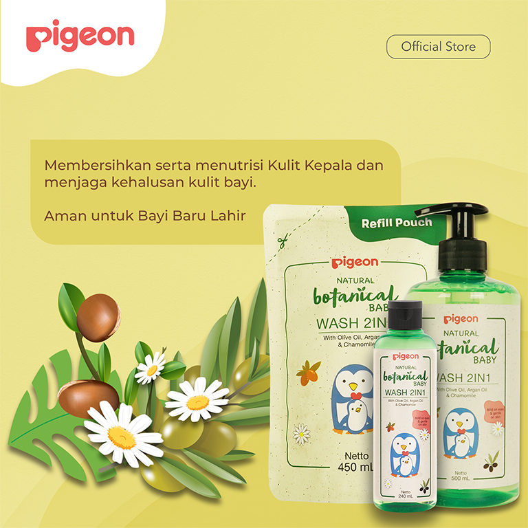 PIGEON Botanical Baby Wash 2in1 | Head to Toe | Sabun dan Sampo Bayi Cocok untuk Kulit Sensitif | Tanpa Pewarna | Hypo