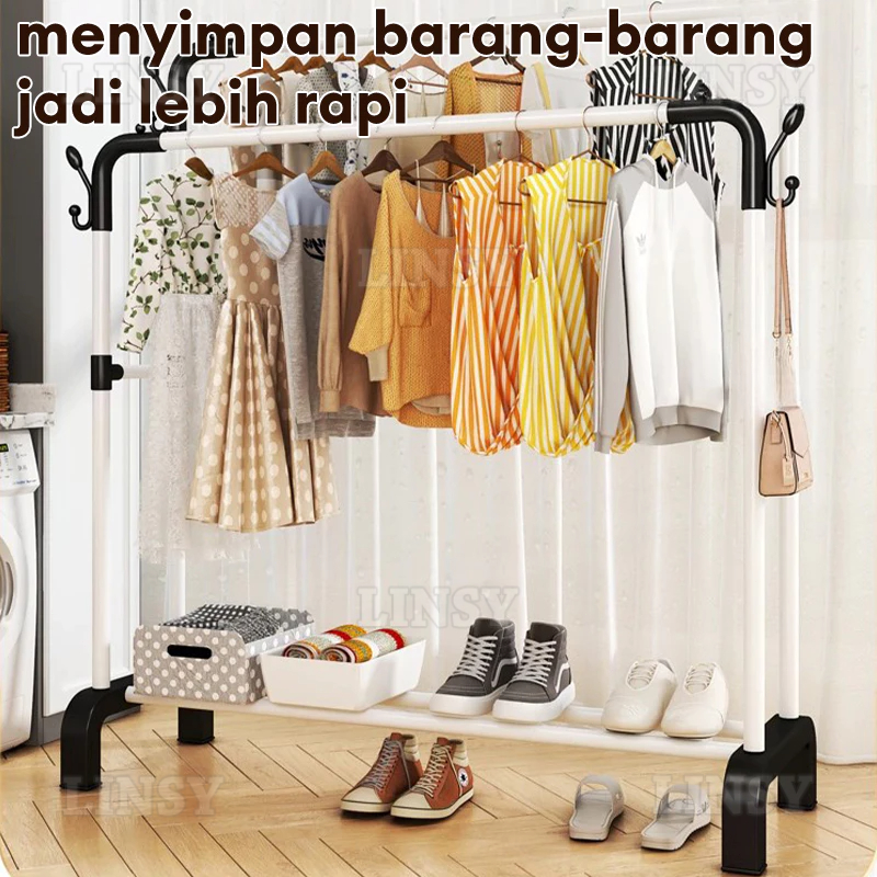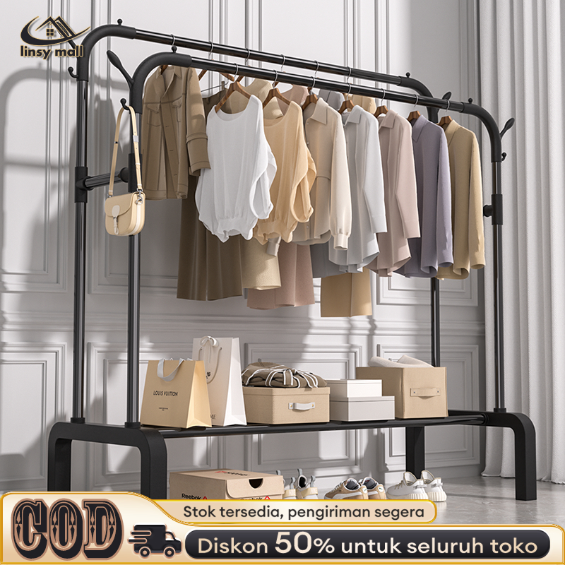 Rak Baju Gantung Portable Rak Gantungan Baju Besi Berdiri Rak Gantungan Baju Aesthetic 110/130/150CM