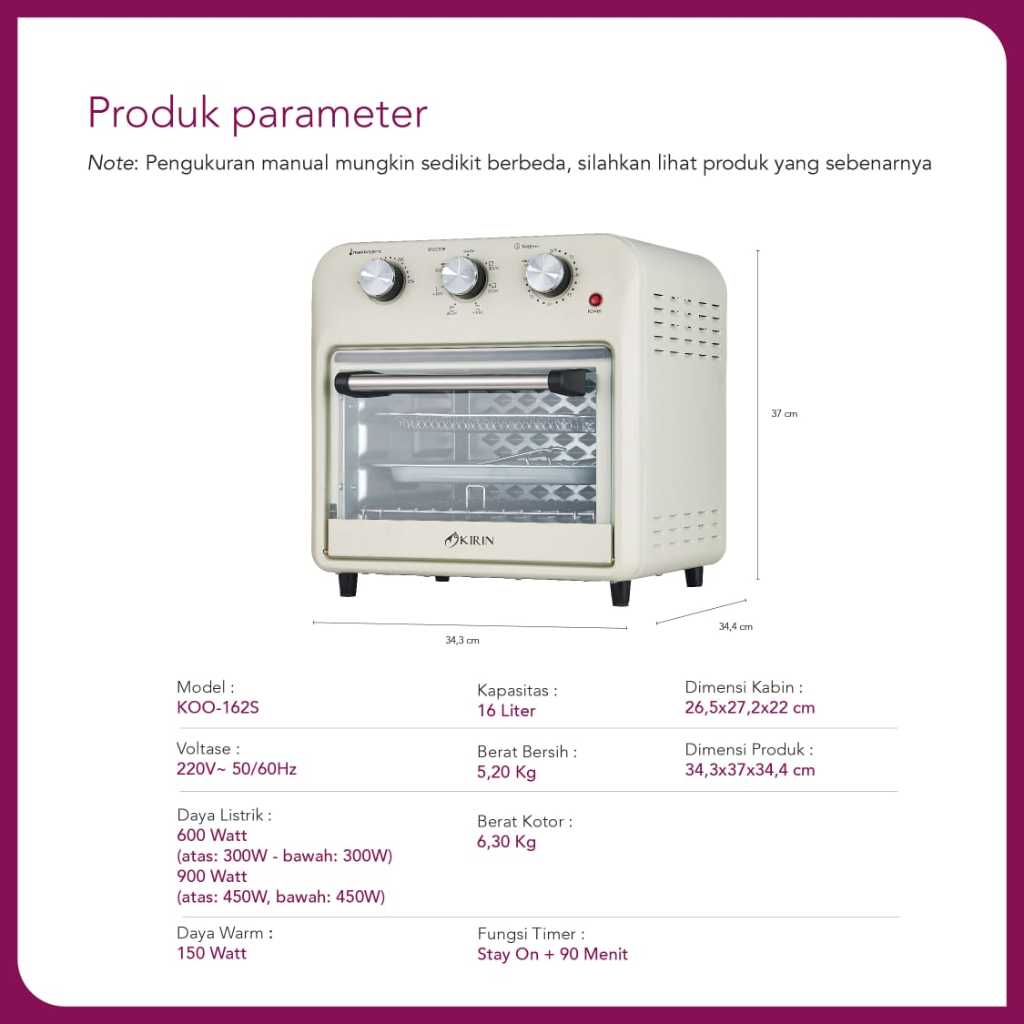 KIRIN Oven Listrik KBO190/KOO-162S/KOO-202S (ORIGINAL 100 PERSEN)