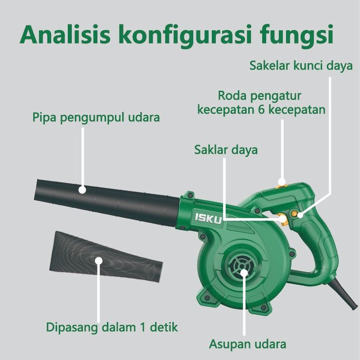 ISKU Industrial Blower 600W/450W 2-in-1 - 15000 RPM, 3.5m³/min High-Performance Electric Blower for Dust