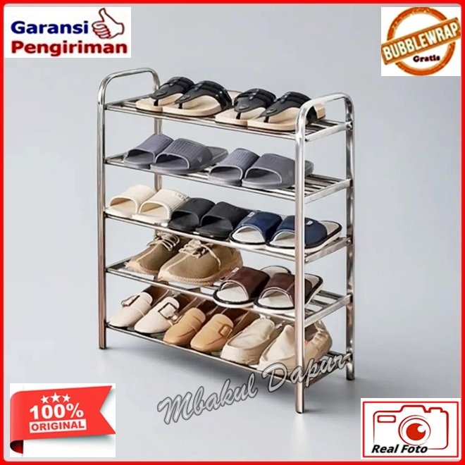 Rak Sandal Rak Sepatu Susun Rak Susun Serbaguna Stainless 5 dan 4 Susun Full Stainless Tebal