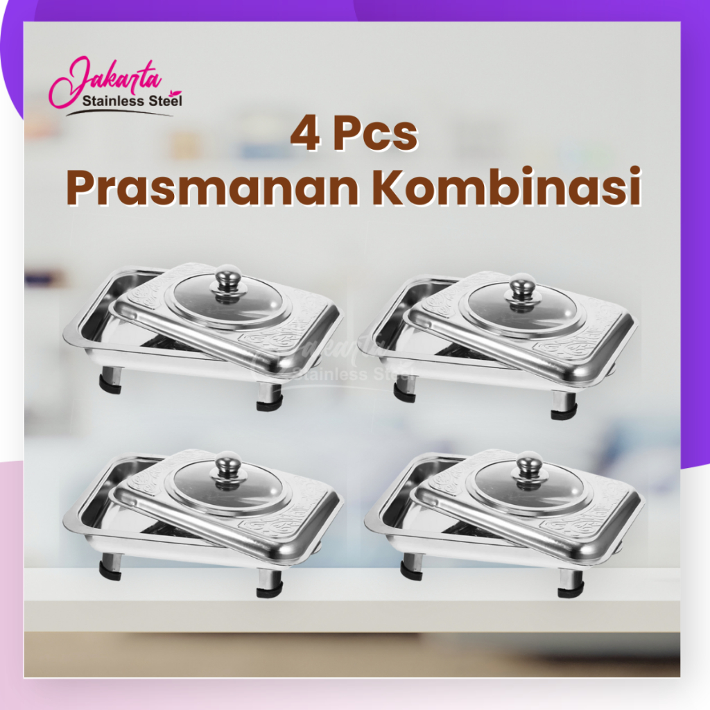 Jakarta SS - 4 Pcs Prasmanan Lauk Paket Chafing Dish Tempat Wadah Lauk Makanan Tutup Kombinasi Chafing Dish Fast Food